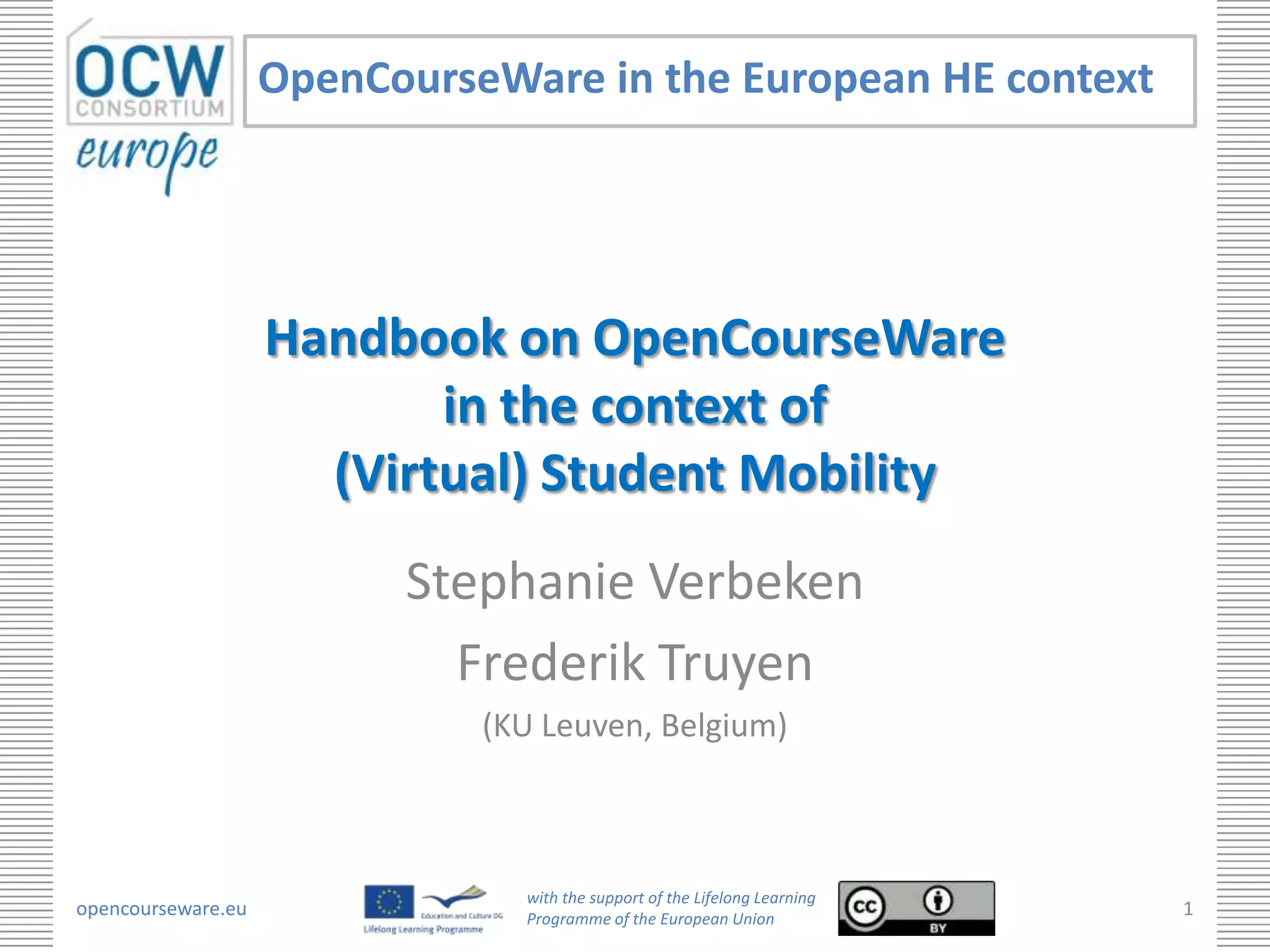 The document discusses the potential of OpenCourseWare (OCW) to enhance (virtual) student mobility in European higher education. It outlines various scenarios for using OCW, recent trends in open education, and the importance of integrating online learning communities and accreditation processes. Key trends mentioned include the use of MOOCs, learning analytics, and the development of personal learning environments.