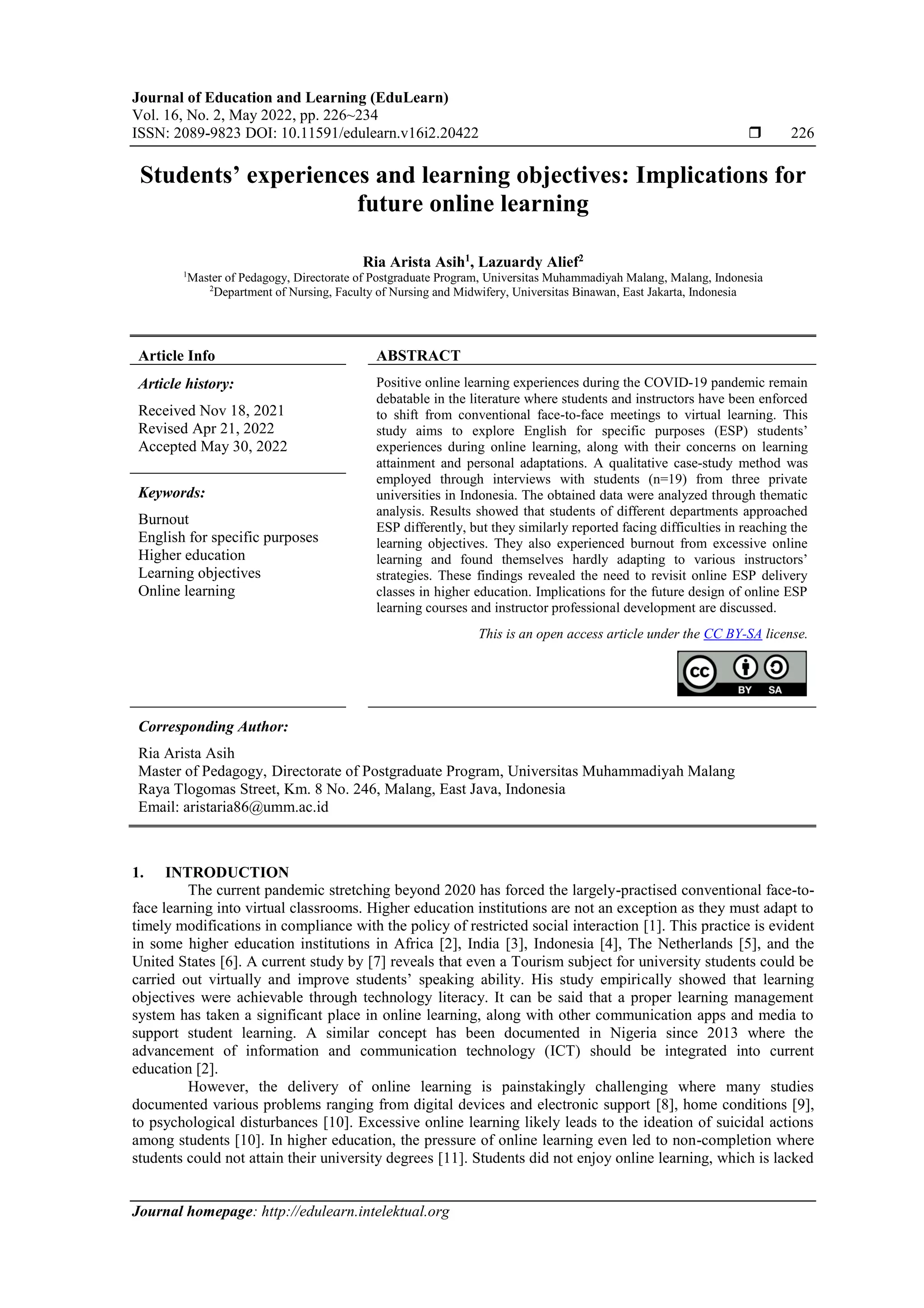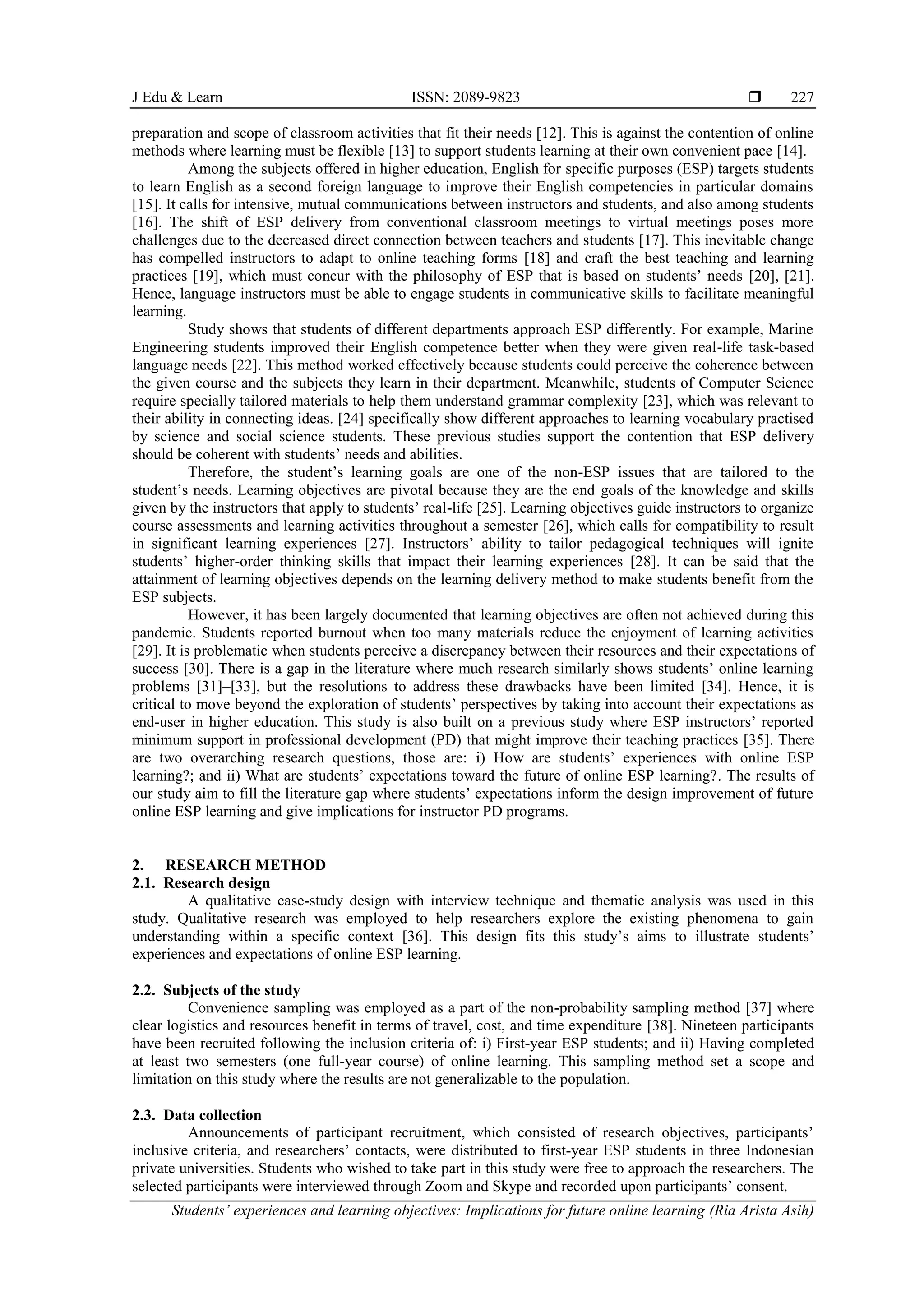 This study investigates students' experiences with online English for Specific Purposes (ESP) learning during the COVID-19 pandemic, highlighting their challenges in reaching learning objectives and adapting to various teaching methods. Findings indicate that while students from different departments approached ESP learning differently, they collectively faced issues of burnout and dissatisfaction, with a perceived gap between expectations and actual learning outcomes. The research underscores the necessity to rethink online ESP course designs and enhance instructor professional development for improved future learning experiences.