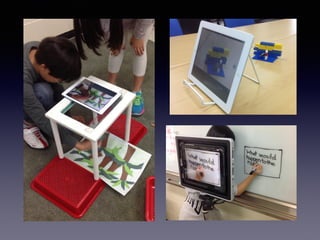 1) The document discusses how stop motion animation can help students better learn and demonstrate their understanding of concepts. 2) Stop motion animation is described as the technique of photographing objects and putting the photographs together as frames of a movie to give the objects the appearance of movement. 3) The document provides tips for creating stop motion animation projects, including using a studio, small movements between frames, and keeping the camera stationary. Students are challenged to create their own stop motion animation.