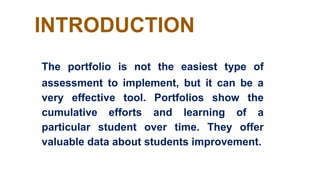 This document provides instructions for creating a portfolio or Google Site. It discusses defining a portfolio, different forms portfolios can take, and uses of portfolios including evaluating student learning and progress. Steps are outlined for creating a Google Site, including choosing a theme, adding and organizing pages, inserting content, and publishing the site. The document concludes with answering some questions about customizing and sharing a Google Site.