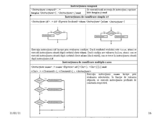 Documentul descrie un curs de formare continuă în limbajul Pascal, destinat elevilor de clasa a 9-a, axat pe cunoașterea tipurilor și structurilor de date, instrucțiunilor specifice și rezolvarea problemelor prin programare. Acesta include unități de conținut precum algoritmi, sintaxa limbajului, tipuri de date și instrucțiuni, oferind concepte fundamentale de programare și exemple de implementare. Elevii vor învăța să depaneze erorile și să adapteze algoritmi pentru diverse probleme, utilizând limbajul Pascal.