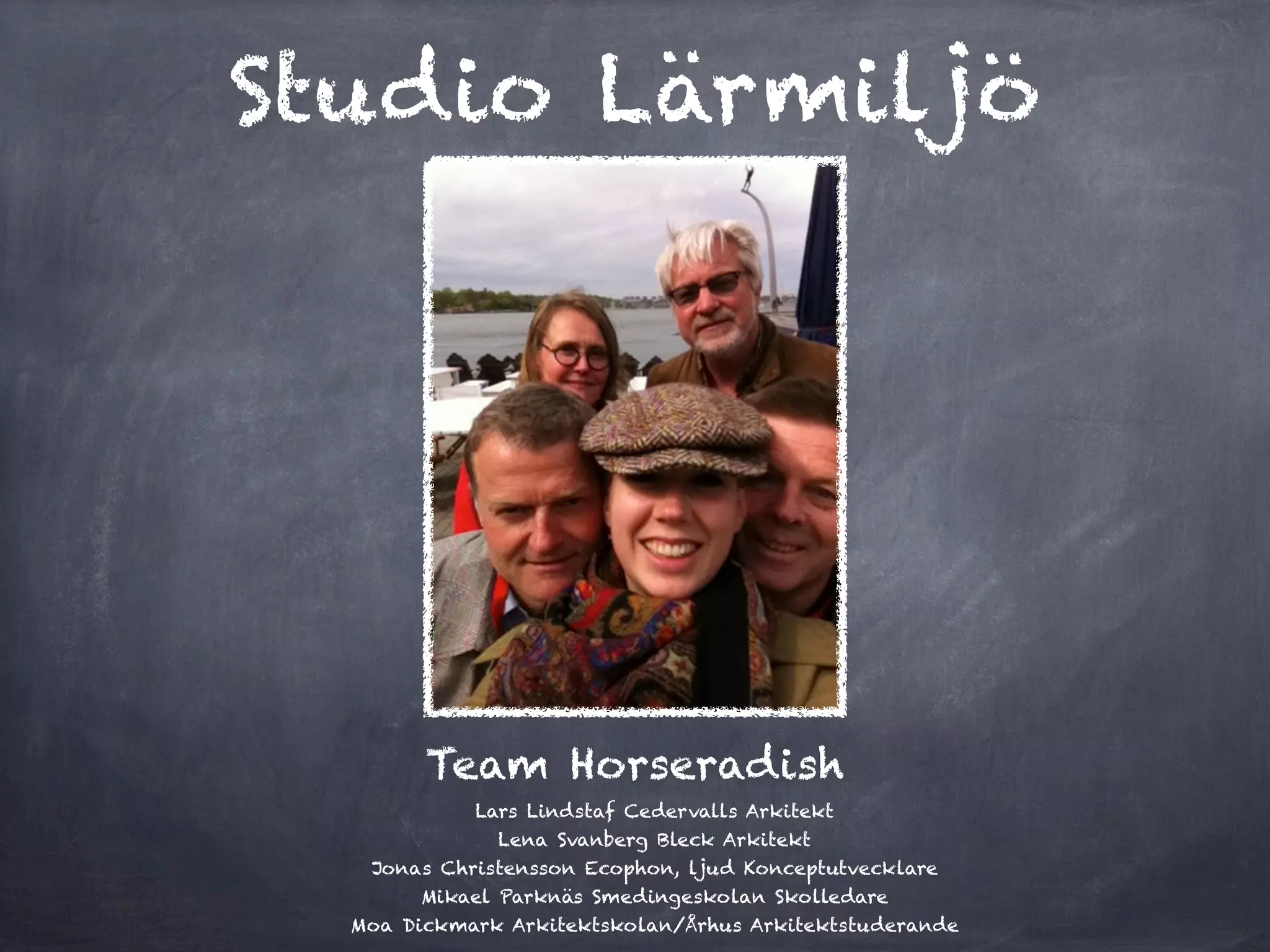 Lena Svanberg arkitekt, Jonas Christensson konceptutvecklare akustik, Moa Dickmark arkitektstuderande och Mikael Parknäs rektor Smedingeskolan.