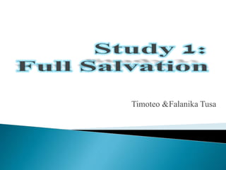 This document discusses the full meaning of salvation according to the Bible. It defines salvation as being saved from sin and its consequences, which include separation from God, suffering, conflict with Satan, and poverty. The document explains that God, motivated by love, made provision through Jesus' death and resurrection for people to be redeemed or set free from these consequences. It asserts that the salvation available in Christ covers every aspect of life, including salvation from sin, the power of the flesh, Satan, affliction, and poverty. The remainder of the document discusses the legal accomplishments of Jesus' death, including that he died as a substitute, made atonement for sins, was a propitiation, paid a ransom for redemption,