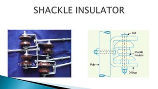 This document discusses conductors and insulators used in electrical machines. It provides details on common conductors like copper, aluminum, and silver. It also describes different types of insulators used for power transmission, including pin insulators, post insulators, suspension insulators, strain insulators, and shackle insulators. Properties of various materials that make them suitable as conductors or insulators are explained. The document concludes with a summary of the key points covered.