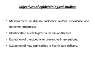 Objectives of epidemiologicalstudies: