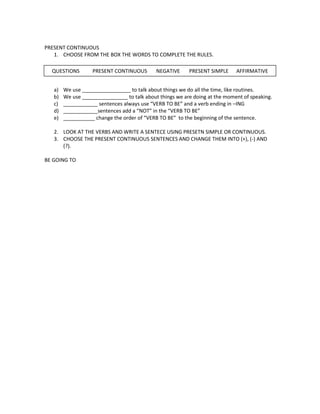 3. Rules for present simple and present continuous tenses and examples of converting sentences between affirmative, negative, and interrogative forms.