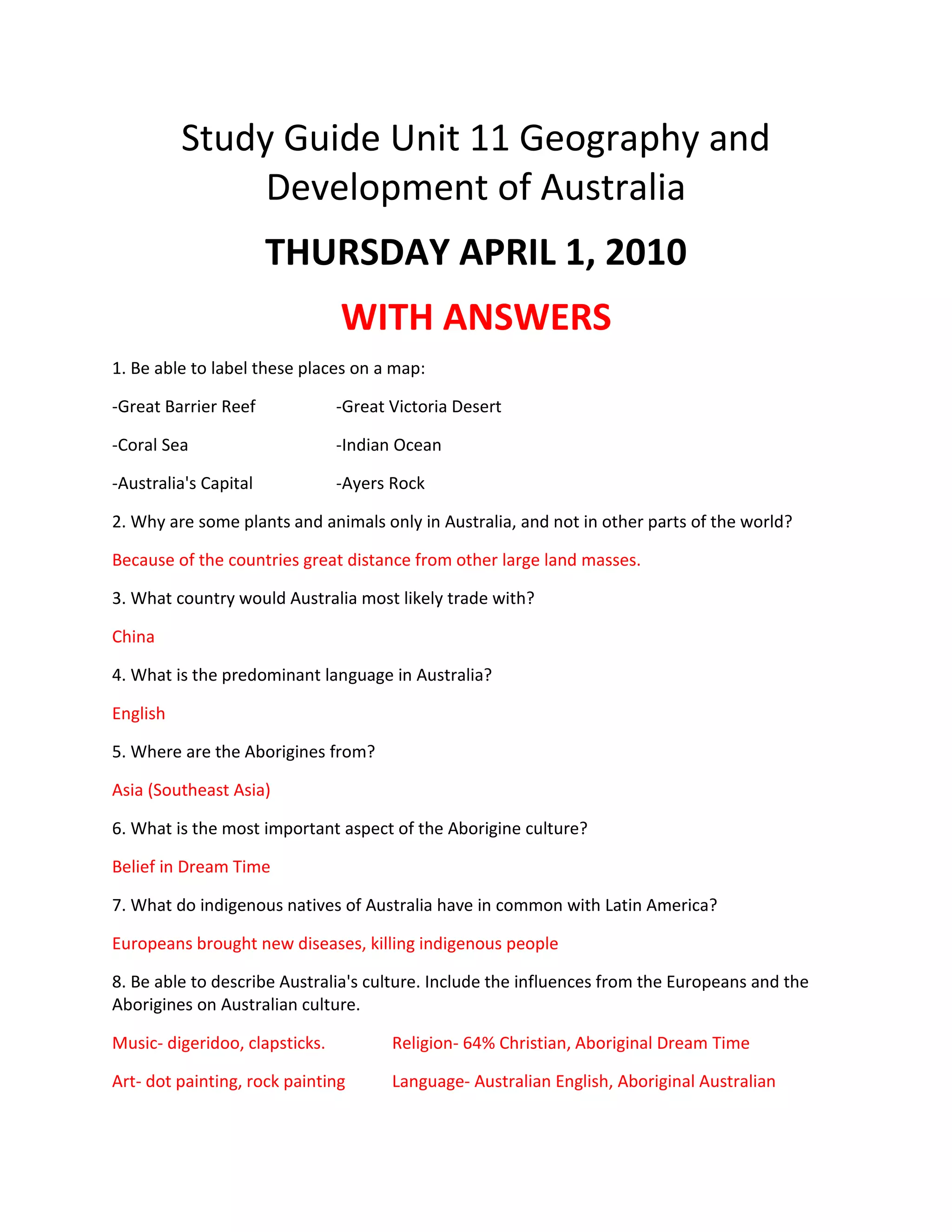 Australia has unique plants and animals due to its long isolation from other continents. English is the predominant language, brought by European settlers, but Aboriginal culture also influences Australian culture, such as through music like the digeridoo and dot painting art. The Aborigines arrived thousands of years ago from Southeast Asia and their Dreamtime beliefs remain an important part of Aboriginal culture today.