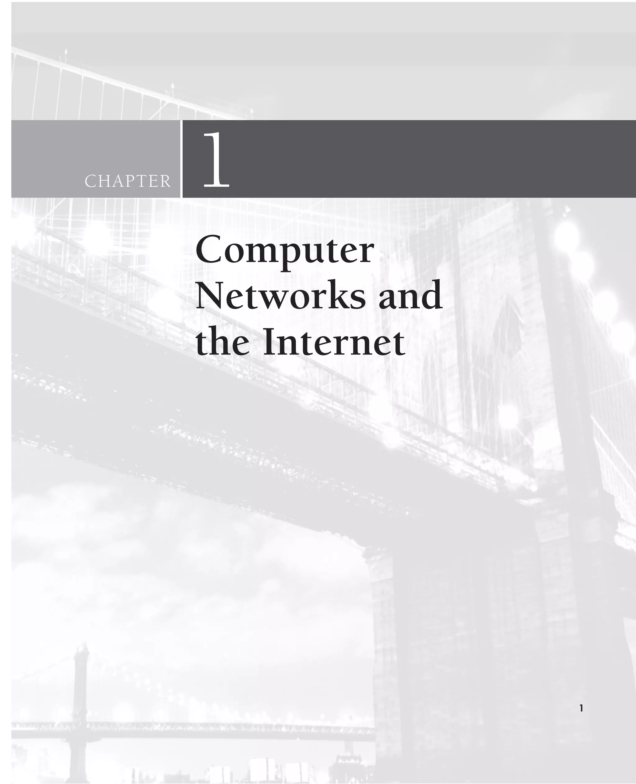 Computer networks consist of end systems like PCs and servers connected by communication links and packet switches. Distributed applications run on end systems and exchange data over the network, including web browsing, email, and video conferencing. When an end system sends data, it is broken into packets which are routed individually through packet switches using the packet's destination address, like mailing letters. Protocols define the format and order of messages exchanged between systems to enable communication.