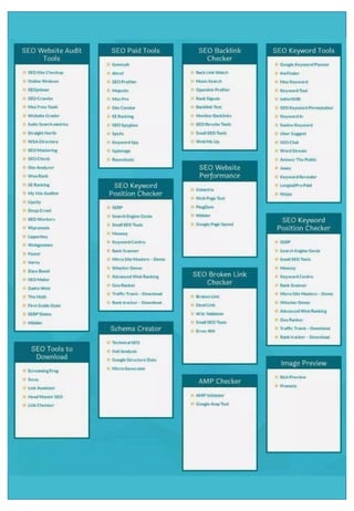 The document provides an overview of on-page SEO optimization techniques. It discusses important on-page elements like URLs, heading tags, images with ALT text, content, internal and external links, and footers. It emphasizes using the main keyword in the H1 heading tag and URL. Images should include descriptive ALT text for crawlers. Content must be high-quality and follow Google's guidelines. Internal links should link to other relevant pages on the site while external links point to other authoritative sites. The footer is also mentioned as an on-page element.