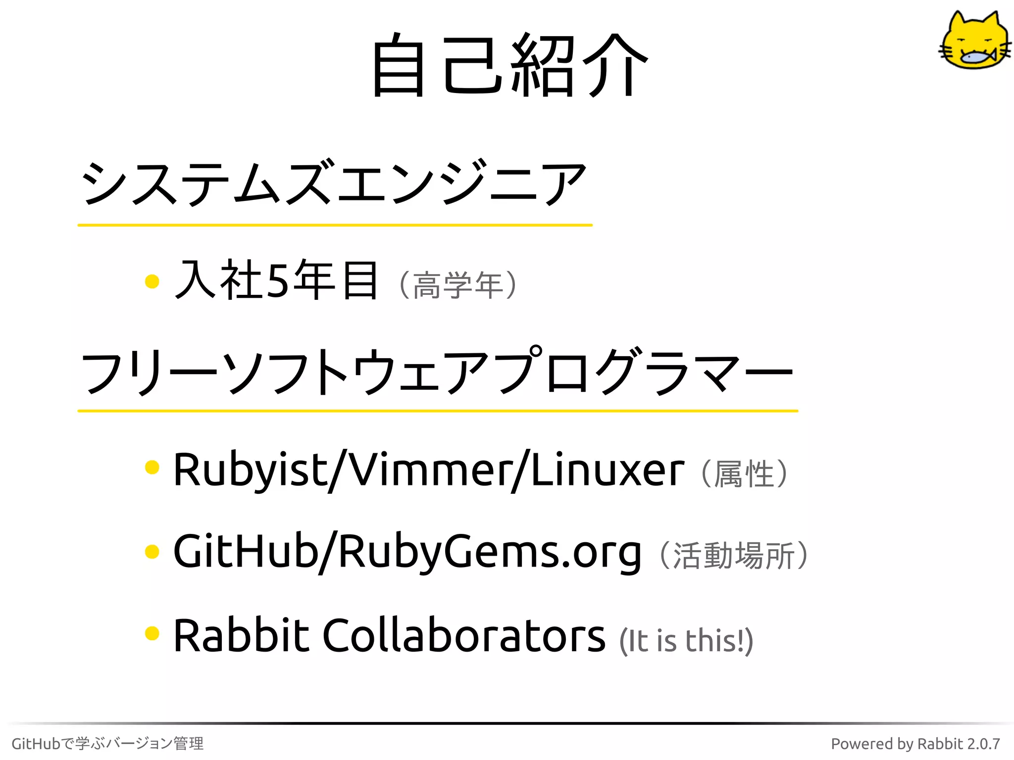 GitHubで学ぶバージョン管理 Powered by Rabbit 2.0.7