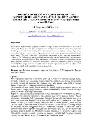Г.Мөнгөнцэцэг - CAPM ЗАГВАР ба ӨРГӨТГӨЛ Д.Өнөрхишиг, Б.Гэрэлтуяа - ТӨСЛИЙН ТОДОРХОЙ АСУУДЛЫН ТӨЛӨВЛӨЛТ БА ХЭРЭГЖИЛТИЙГ УДИРДАХ НЭЭЛТТЭЙ ЭХИЙН “РЕДМАЙН” СИСТЕМИЙГ СУДЛАХ НЬ (Study of