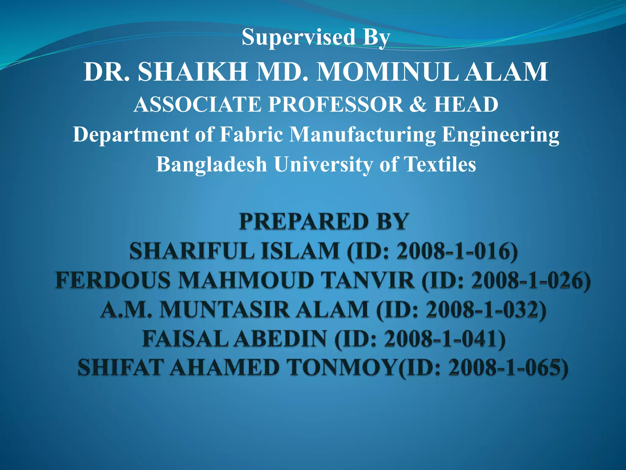 This presentation discusses knitting machine elements like needles, sinkers, cams, and lubrication systems. It describes different types of needles from manufacturers like Groz-Beckert, their specifications and benefits. Sinkers are thin metal plates that perform functions like loop formation and holding down. Cams are profiled to produce needle movements and include knit, tuck, and miss cams. Pulsonic and Uniwave are lubrication systems that precisely distribute oil to reduce consumption and mist. The effects of these elements on fabric properties are also examined.