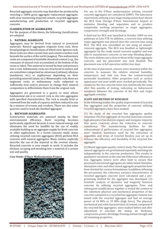 The study examines the use and effectiveness of recycled concrete aggregates (RCAs) in construction, highlighting the challenges and potential improvements in concrete quality. It discusses various methods for enhancing the characteristics of recycled aggregates, the environmental benefits of recycling concrete, and the comparative performance of RCAs against natural aggregates. The research concludes that while RCAs can be effectively used in concrete production, careful monitoring and treatment are necessary to mitigate the negative impacts on strength and durability.