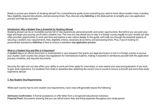 This comprehensive guide explains essential aspects of obtaining a student visa for studying abroad, including requirements, fees, eligibility, necessary documents, and processing times. It emphasizes the importance of a student visa for legal residency and potential work opportunities while studying in a foreign country. Hellovisa is presented as an expert partner to help students navigate the complexities of the visa application process.