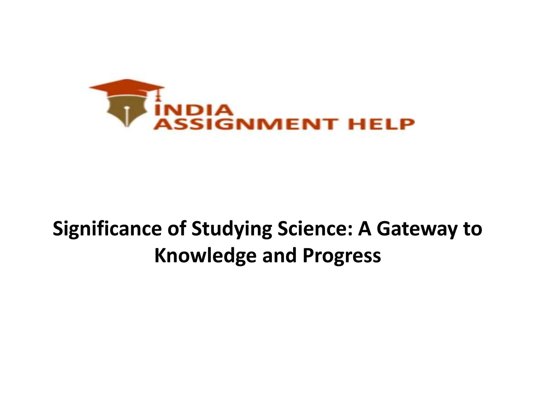 The document discusses the significance of studying science as essential for knowledge, societal progress, and technological advancements, while also emphasizing the importance of critical thinking and career opportunities. It highlights applications of science across various fields such as healthcare and transportation, and the emerging need for science assignment help services to support students in their academic journeys. Ultimately, it concludes that studying science is crucial for understanding nature and solving contemporary challenges.