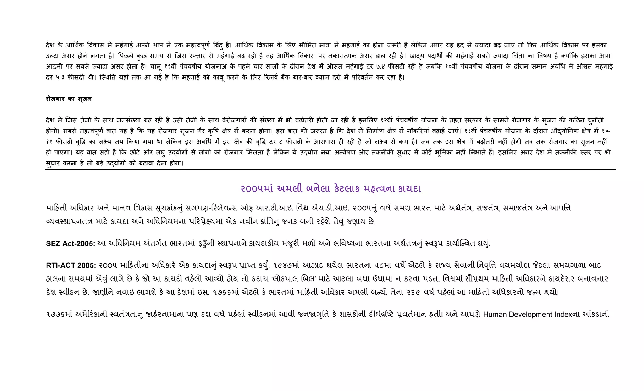 િવધાયક કદમ છે. આમ, ૨૦૦૫ વષ+માં આવેલા કાયદાઓ પૈક" આ ચાર કાયદાથી ભારતમાં સં8ાંિતકાળની શBઆત થઇ છે. તેના માiયમથી જ માનવિવકાસ ૂચકાંકનાં /ણ પ રમાણ 4વા4wય,