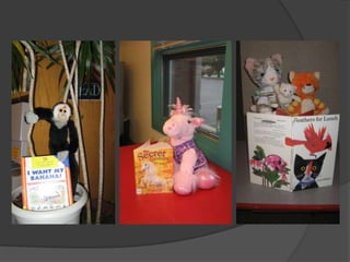 Kaelie, Fluffy, Cadence, Max, Steven, Joey, Baby Penguin, Stephanie, Chi-Chi, Sarah, and Monkey had a stuffed animal sleepover at the library. During the night, the animals had a wild party until one got hurt. In the morning, the animals played hide-and-seek, worked puzzles, and colored pictures until it was time for their owners to pick them up.