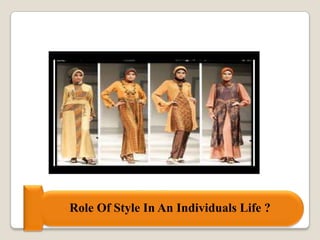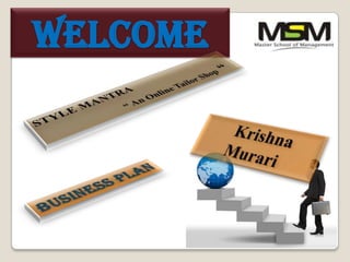 This document provides an overview of an online tailoring business called Style Mantra. It discusses the business's vision and mission to provide customized clothing through online ordering. It outlines the company's product categories for men's and women's clothing in different fabric types and price ranges. It also discusses the target customer segments, positioning, promotion strategies, and basic financial assumptions. Key points covered include targeting professionals, positioning as a market leader for custom clothing, and promotion through online and print advertising.