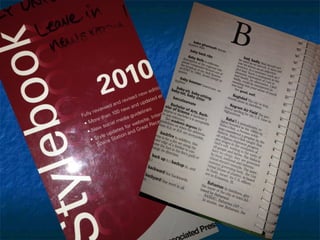 This document provides 14 style guidelines for proper writing according to The Associated Press Stylebook and Briefing on Media Law. It addresses topics such as addresses, datelines, states, cities and states in text, acronyms, time, the Church's name, BYU, composition titles, compound modifiers, identifying students, months, money, and numbers. The guidelines provide examples for correctly formatting each of these elements according to AP style.
