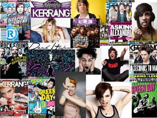 This document discusses style choices for a rock magazine, including fonts and color schemes. For fonts, a simple yet elegant font is selected for articles, a distinctive font is chosen for mastheads to be eye-catching but readable, and a third font is picked for titles and contents to complement the other fonts. The selected color scheme mixes typical rock colors like red with less common shades like pink to appeal to both female readers and rock audiences while standing out from other magazines through its color balance.