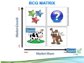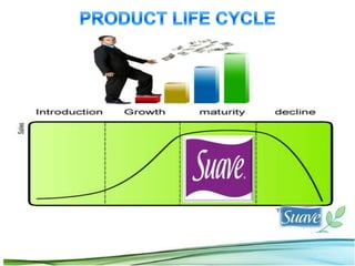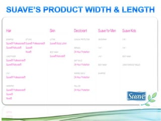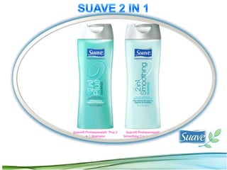 The document analyzes two advertising plans for Suave shampoo - a $7.8 million plan focusing on daytime and primetime TV proposed by Ellen Vallera, and a $10.2 million plan focusing entirely on primetime TV proposed by Tom Kuykendall. The shampoo market is highly competitive and brands face threats from new entrants. Suave needs an advertising strategy to maintain its market position and retail shelf space. The document performs a SWOT analysis of the plans and recommends accepting Vallera's plan with higher allocation to primetime TV, while targeting light users through new products.