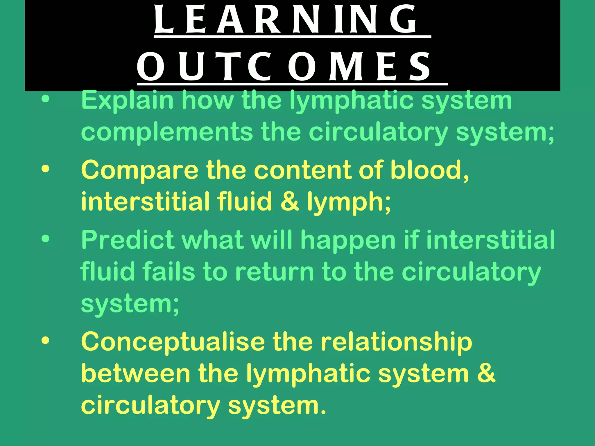 The lymphatic system complements the circulatory system by draining 10% of interstitial fluid into lymphatic capillaries to form lymph. Lymph moves through lymphatic vessels via muscle contraction and enters the circulatory system through the right and left subclavian veins. While blood, interstitial fluid, and lymph are all liquid transports, they differ in their protein, oxygen, and lipid contents. If interstitial fluid fails to return to the circulatory system, it can accumulate and cause edema in tissues. The lymphatic system works with the circulatory system to transport interstitial fluid back to the heart.