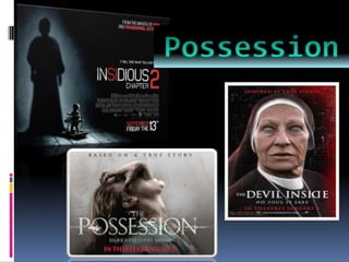 The document discusses various horror film subgenres and their common conventions. It analyzes supernatural, psychological, slasher, possession and gothic subgenres. For each, it identifies common narrative structures, character tropes, locations, and visual/audio techniques. For example, it notes possession films typically feature religious imagery and are set in isolated places with dark histories. The author's group chose the possession subgenre for their film due to its complexity, relevance and opportunities for creative expression.
