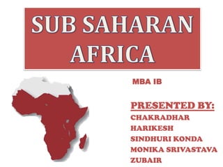 This document provides an overview of Sub-Saharan Africa. It outlines the political map, geographical conditions, economical conditions, and social issues of the region. The geographical conditions include deserts, mountains, valleys, and rivers. Key economic issues include energy, unemployment, standard of living, trade, and agriculture. The document also discusses political instability in Sub-Saharan Africa since independence, and how this has negatively impacted economic development. Specific topics covered include food crises, Nigeria's oil industry, conflicts between Ethiopia and Eritrea, and AIDS in Africa. The document provides several links for further reference.