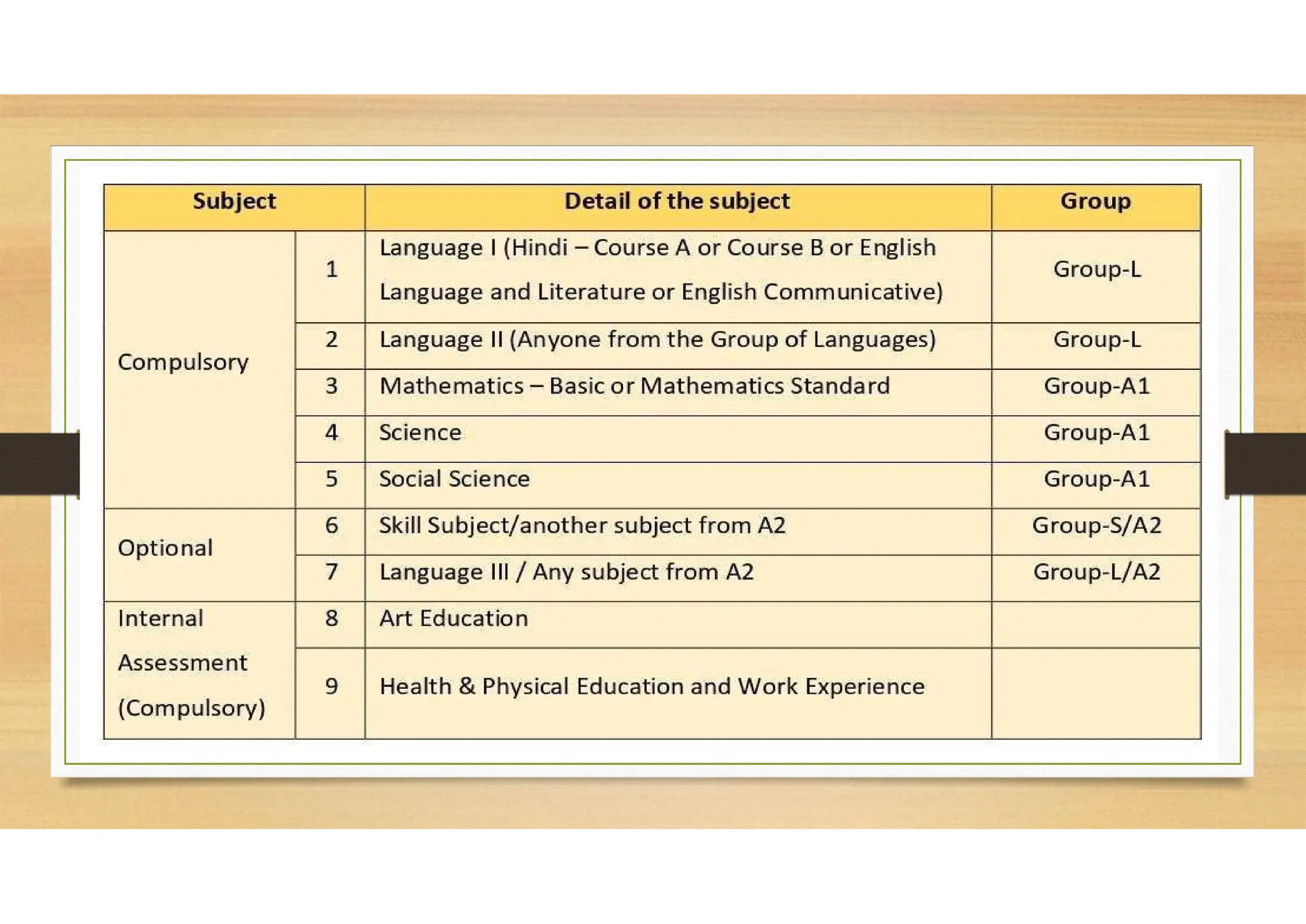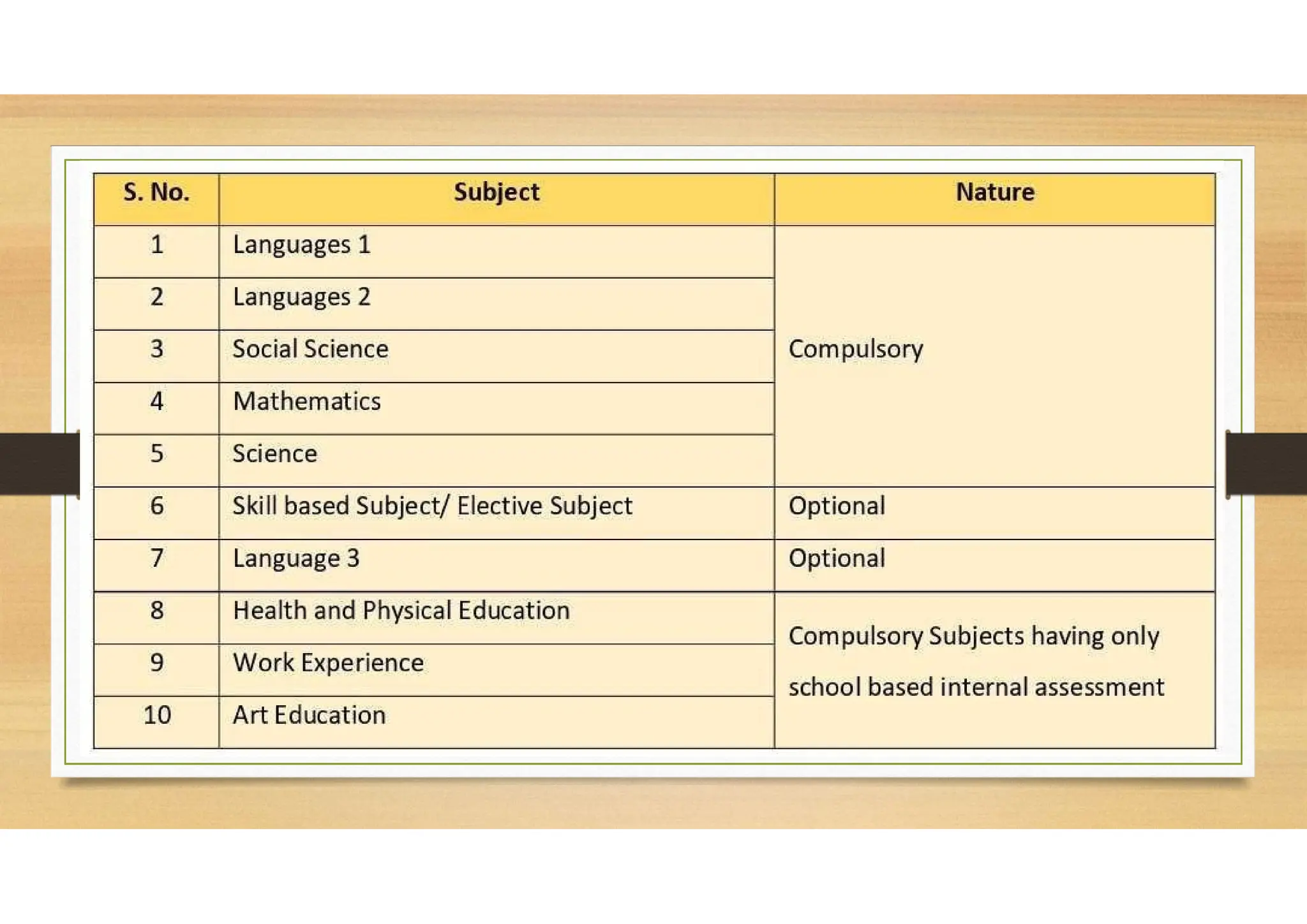 major learning areas or scheme of subjects as under: