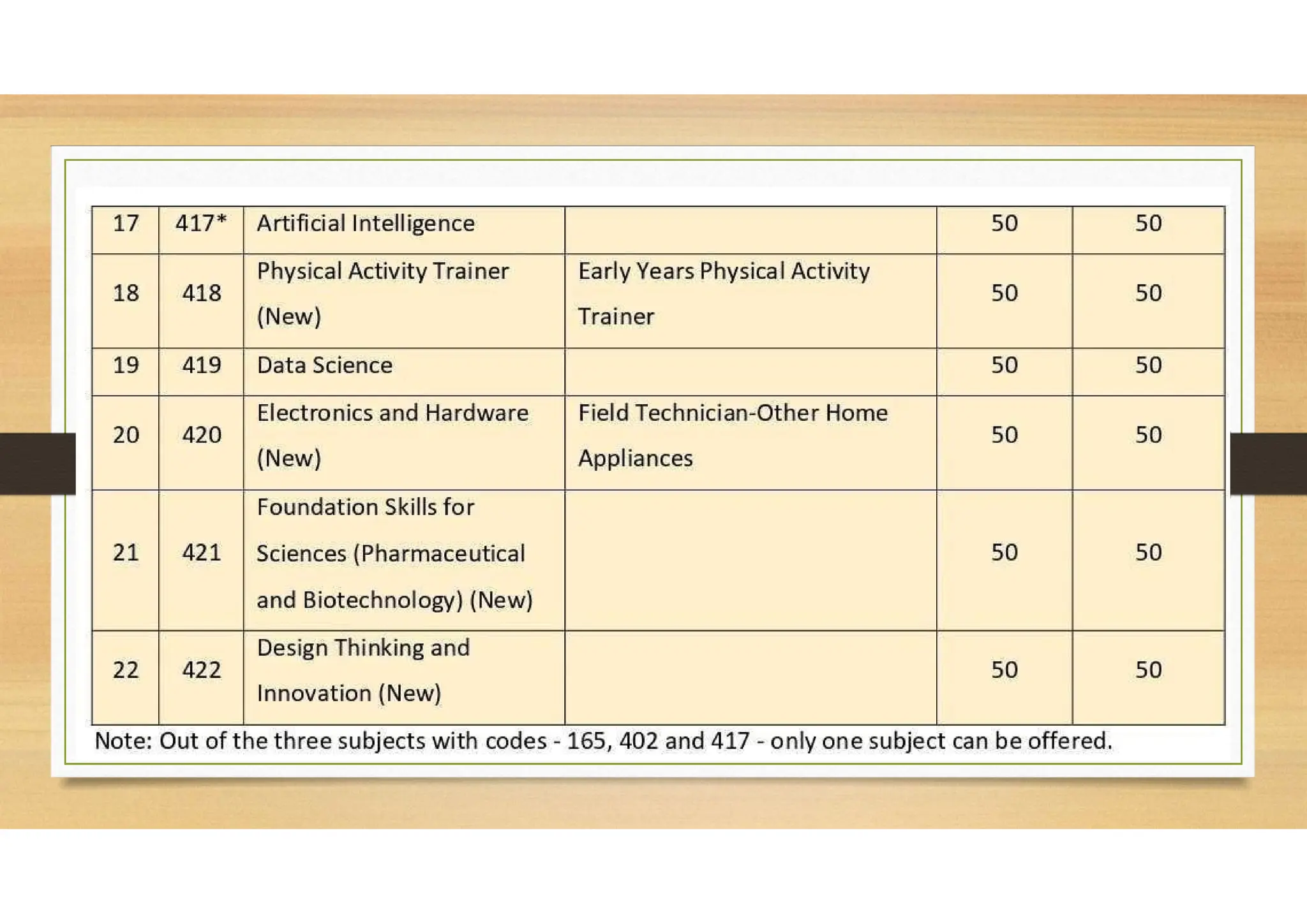 Finance, AI etc. Choosing any one Skill subjects at secondary level