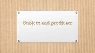 The document discusses the key components of a complete sentence: the subject and the predicate. The subject names who or what the sentence is about, while the predicate tells what the subject is or does by including the main verb or verb phrase. Examples are provided to illustrate identifying the subject and predicate in simple, compound, and complex sentences.