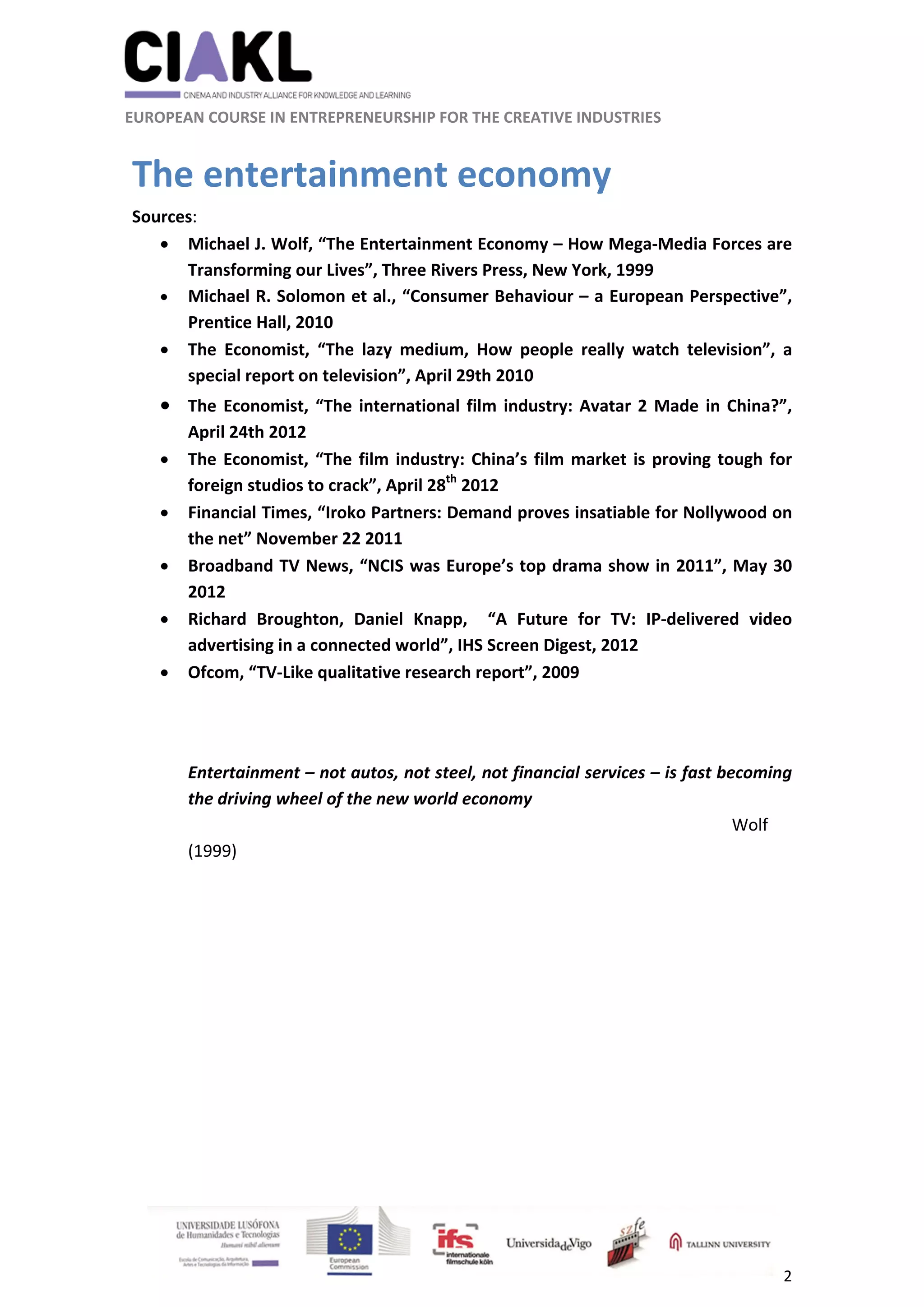 This document discusses the entertainment economy and industry from an economic perspective. It defines entertainment and discusses how entertainment is influencing society and becoming a major economic force. Entertainment economics examines how entertainment organizations use resources to produce content and satisfy audience wants and needs. The document also outlines some key aspects of the entertainment industry like the different types of firms, industries, levels of competition, and forces that shape the industry such as globalization, regulation, technology and social aspects.