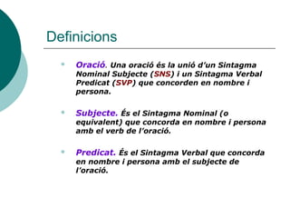 Oració. Unaoració és la unió d’un Sintagma