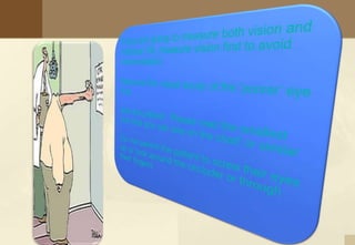 This document provides instructions for performing subjective refraction using both distance and near vision tests. It discusses evaluating visual acuity with current prescriptions, estimating spherical and astigmatic errors, determining best sphere and refining the prescription. Tables are included showing relationships between visual acuity, refractive error and calculating residual sphere. Procedures for spherical correction using letter charts and duochrome tests are outlined. LogMAR and Snellen visual acuity charts are also described.