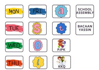 This document contains a list of subject codes and names for various school subjects including math, English, biology, chemistry, physics, history, religion, and reading. It also includes codes for extra math and school events like assembly.