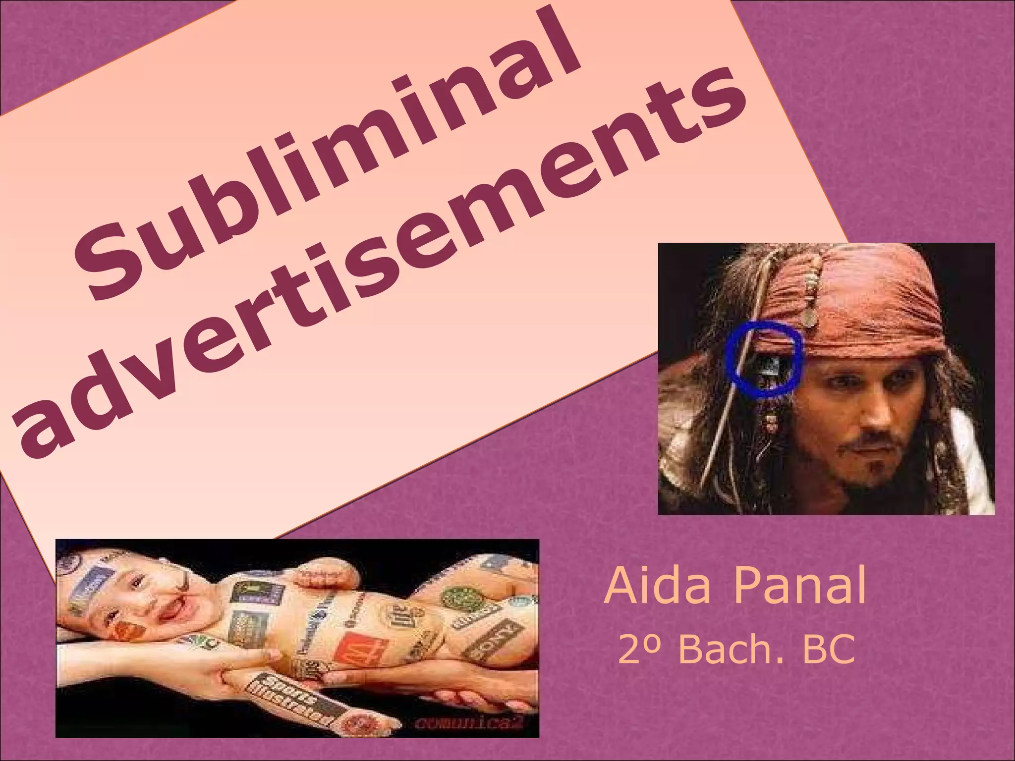 Subliminal messages are stimuli designed to influence the mind below the threshold of conscious awareness. The document discusses an experiment in 1957 where subliminal messages to buy Coca-Cola and popcorn were flashed in a movie theater every five seconds, finding that sales of those products increased. It also notes debates around whether subliminal messages can sway desires and the ethics of using them to influence consumers.