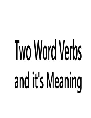 This document contains two lists of two-word verb phrases and their meanings. The first section lists 20 two-word verb phrases like "come across", "count on", "cut down on", and "find out" along with their definitions. The second section provides the present, past, and future tense forms of example verbs like "bleed", "blow", "break", and "breed". The document appears to be submitted by a student to a teacher as an assignment on two-word verb meanings and verb conjugation.