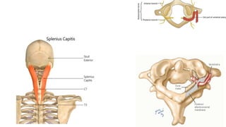 The suboccipital triangle is a muscular triangle situated on each side of the midline in the back. It is bounded superiorly by the rectus capitis posterior major and obliquus capitis superior muscles, inferiorly by the obliquus capitis inferior, and has the semispinalis capitis, splenius capitis, and longissimus capitis muscles forming its roof. The third part of the vertebral artery, the first cervical nerve, and suboccipital plexus of veins pass through the suboccipital triangle. A cisternal puncture procedure approaches the cisterna magna through the foramen magnum by piercing the posterior atlanto-occipital