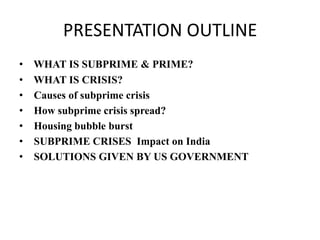 1) It explains what subprime and prime loans are and defines what a crisis is.