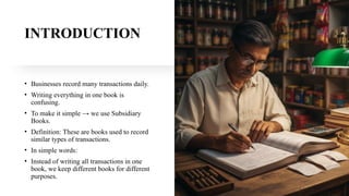 * Definition: Subsidiary Books are used to record similar types of transactions.