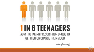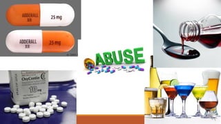 This document provides an overview of substance abuse for students. It defines substance abuse and distinguishes it from substance dependence. It discusses the prevalence of substance abuse among students, noting that marijuana and prescription drugs are the most commonly abused. The document outlines various signs and symptoms of substance abuse and how substances affect the brain. It also discusses factors influencing abuse, consequences of abuse, and medical treatments and resources available.
