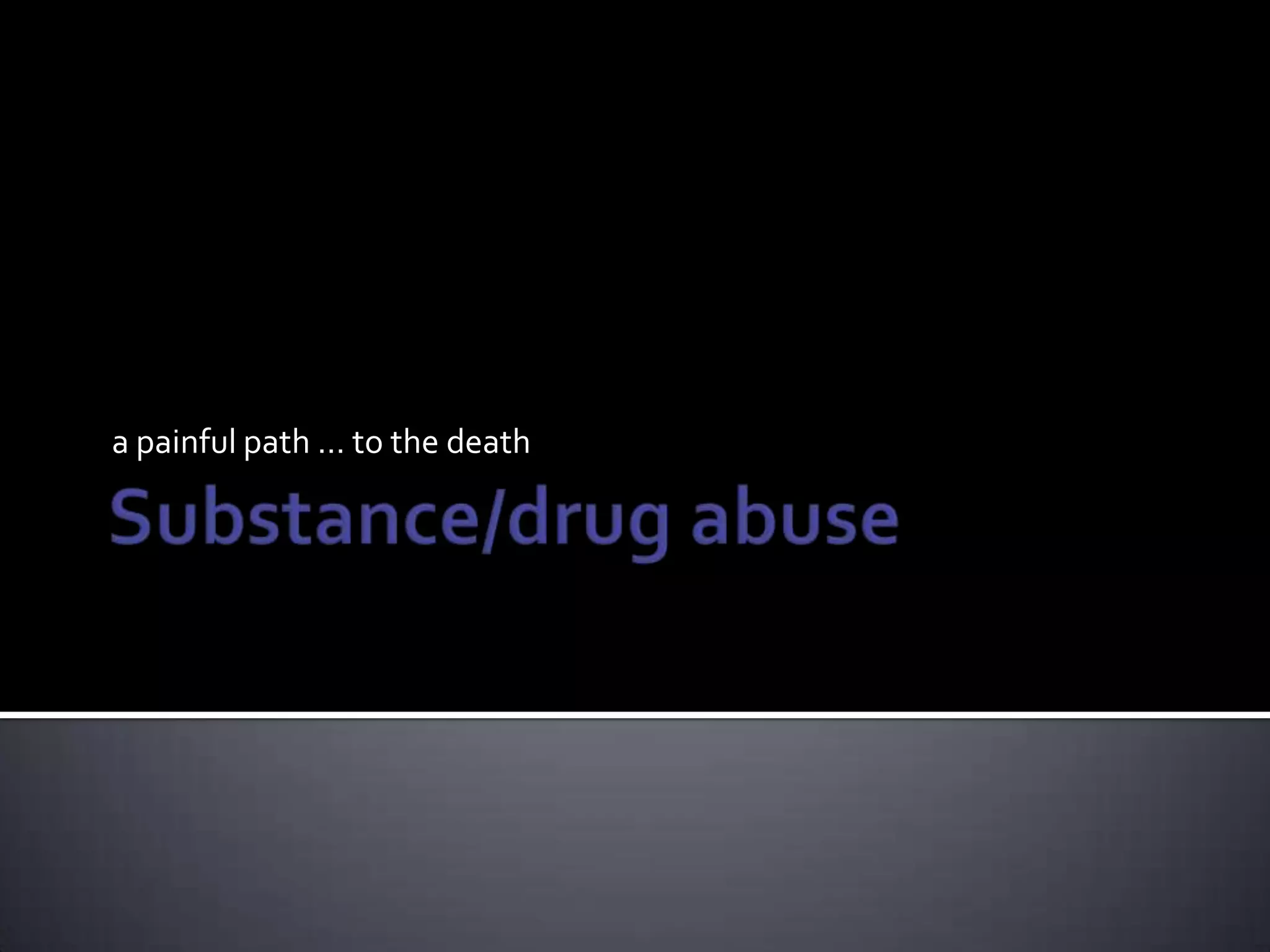 Substance and drug abuse can have serious negative effects on the body. Drugs are chemicals that work in predictable patterns to mimic, facilitate, or antagonize the body's normal functions, with their effects depending on factors like the substance, route of administration, dosage, and frequency of use. Common drugs of abuse include alcohol, tobacco, over-the-counter medications, depressants, narcotics, stimulants, and hallucinogens, each of which can impact the body in harmful ways when misused or abused.