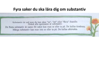 1. Substantiv är ord som du kan säga ”en”, ”ett”