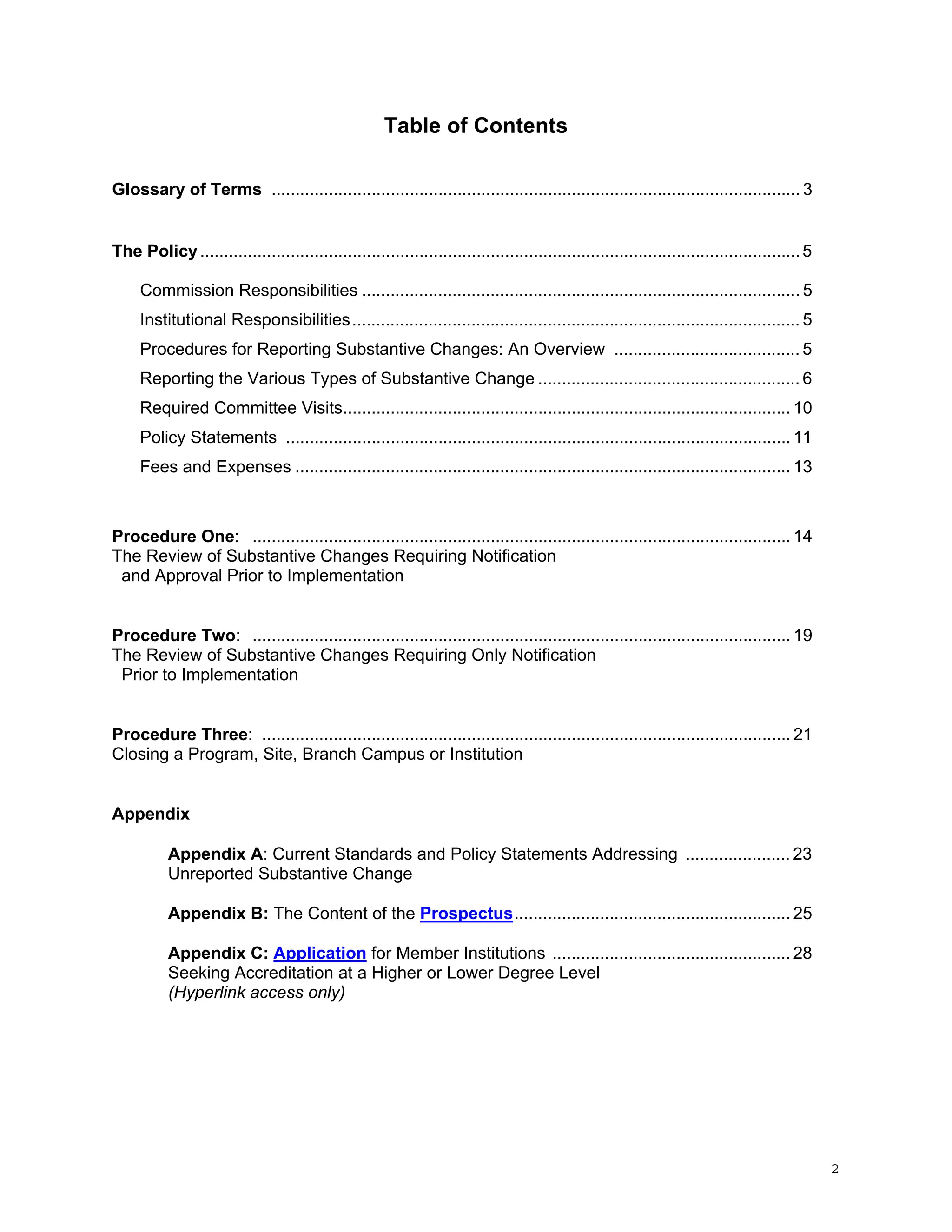 The document outlines the policies and procedures for accredited institutions of the Southern Association of Colleges and Schools Commission on Colleges (SACSCOC) regarding substantive changes. It defines substantive change and lists various types that require either notification and approval or just notification prior to implementation. It provides guidelines for reporting substantive changes and notes that institutions must have policies to ensure timely reporting. It also lists committee visit requirements and fees associated with reviews.