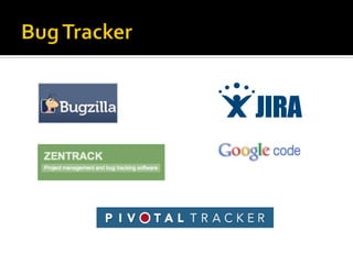 The document discusses the importance of version control systems and bug tracking systems in software development, highlighting the evolution of version control from early systems to modern tools like Git and Mercurial. It emphasizes the professional practices that distinguish skilled programmers from amateurs, including automation, systematic testing, and debugging techniques. Additionally, various bug tracking systems such as Bugzilla, Jira, and Pivotal Tracker are briefly described, showcasing their features and functionalities.