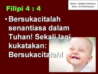 Dokumen ini menyenaraikan nama Stephen Antonius yang berulang kali, menunjukkan kelas XI.A dalam pemasaran. Ini menunjukkan pengulangan maklumat yang sama. Tidak terdapat informasi tambahan yang disediakan.
