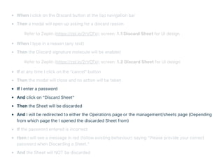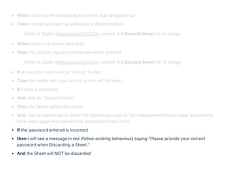 The document discusses the Specification by Example (SBE) methodology, emphasizing its role in collaboratively defining requirements throughout the software development lifecycle. It includes a functional specification for Nulogy's QCloud solution, noting that it is not exhaustive of all functionalities and is confidential. It also outlines testing scenarios for ensuring system security, such as preventing blank passwords.