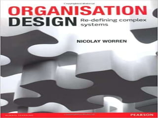 The document discusses reasons why organizational redesigns fail and keys to success. Common failures include not establishing clear goals for the redesign, structuring the organization around specific personnel rather than business needs, causing too much disruption, making side agreements outside the process, skipping assessing the current state, breaking confidentiality, and neglecting change management planning. To succeed, organizations should understand drivers for change, separate design from staffing decisions, minimize disruption, follow an agreed-upon process, conduct a current state assessment, maintain confidentiality during planning, and implement formal communications.