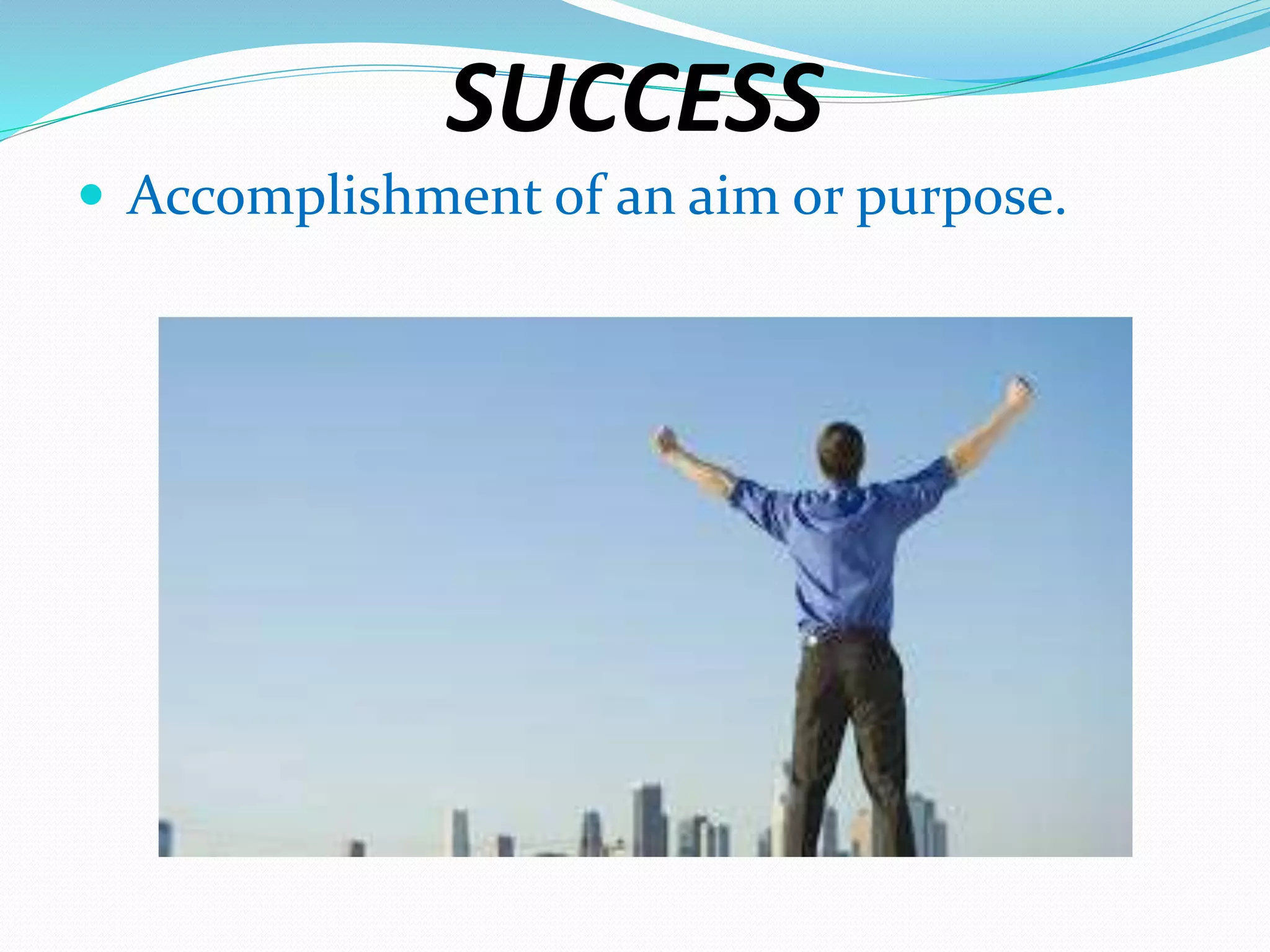 The document discusses keys to achieving success, including hard work, confidence, planning, discipline, persistence, maintaining a positive attitude, honesty, focus, and good character. It emphasizes that success comes from working hard in silence rather than seeking recognition, believing in yourself, choosing your path rather than blaming outside factors, keeping dreams larger than excuses, and focusing on solutions rather than reactions to problems. Overall success is defined by living a life you are proud of according to your own rules and terms.
