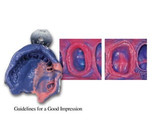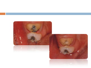 This document discusses common problems that can occur with crowns and bridges (C&B) and their solutions. It covers issues with impressions, frameworks, cementation and clinical/laboratory techniques. Some key points: - Impression problems like voids, tears or lack of detail can result in poor fitting restorations. Solutions include improving retraction, moisture control, and using appropriate materials and techniques. - Framework issues like porcelain fractures, solder joint failures or distortion can cause restorations to fail. Rounding internal line angles, ensuring adequate porcelain thickness/support, and preventing flaws can help. - Changes in abutment teeth over time from issues like periodontal disease, caries or